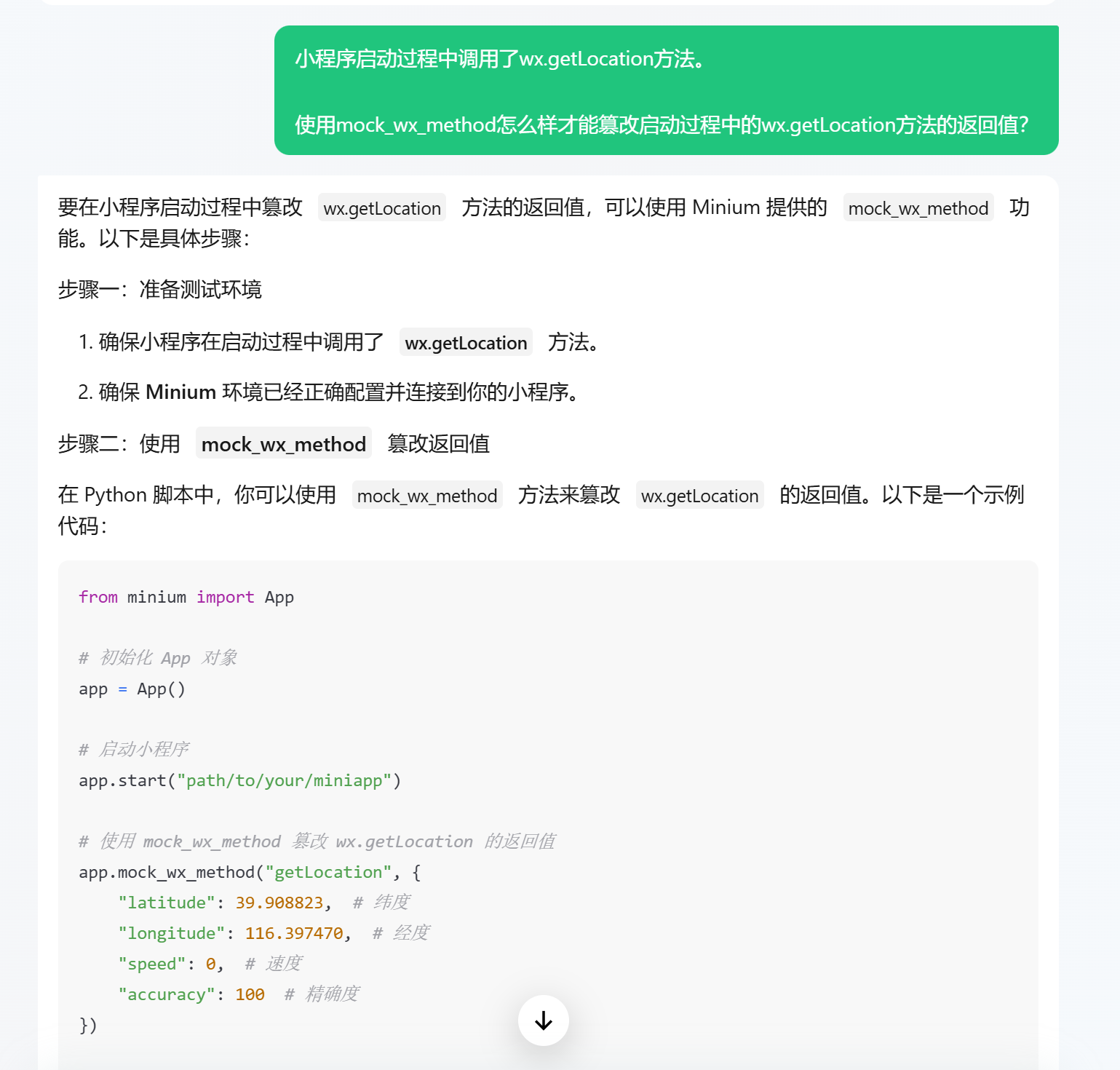 使用mock_wx_method怎么样才能篡改启动过程中的wx.getLocation方法的返回值?