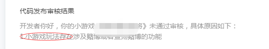个人提交了微信棋牌小游戏,审核不通过的原因是: