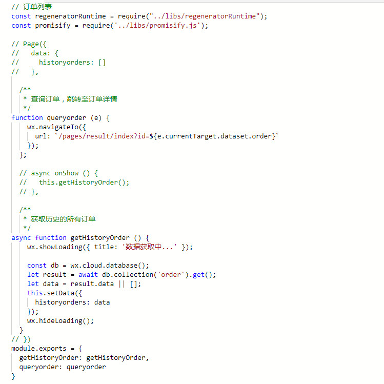 微信支付里有个订单查询函数模块 queryorder,原来是以page构造使用,我把它做成module exports,结合template 整体输出在别的页面里。结果报错,去掉regeneratorRunime 和await 错误就会消失