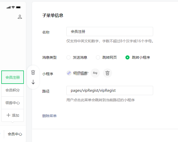 自定义菜单里之前跳转的会员系统怎么不见了?