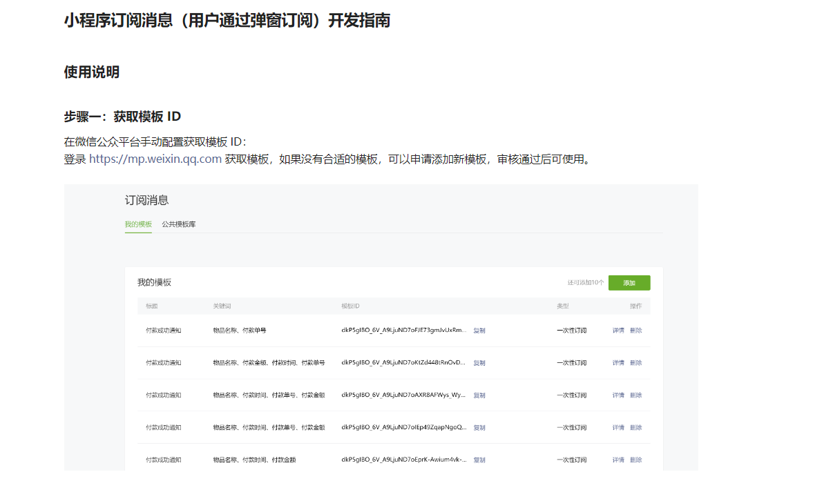 请问小程序订阅消息,怎么添加模板呢?小程序后台没有“添加”按钮,是只可以选择公共模板吗?公共模板里面没有想要的模板,怎么添加呢?