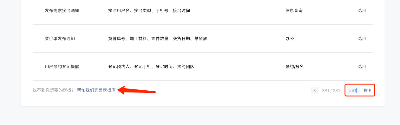 如果没有找到合适的,跳转到最后一页,即可看到申请模板入口。