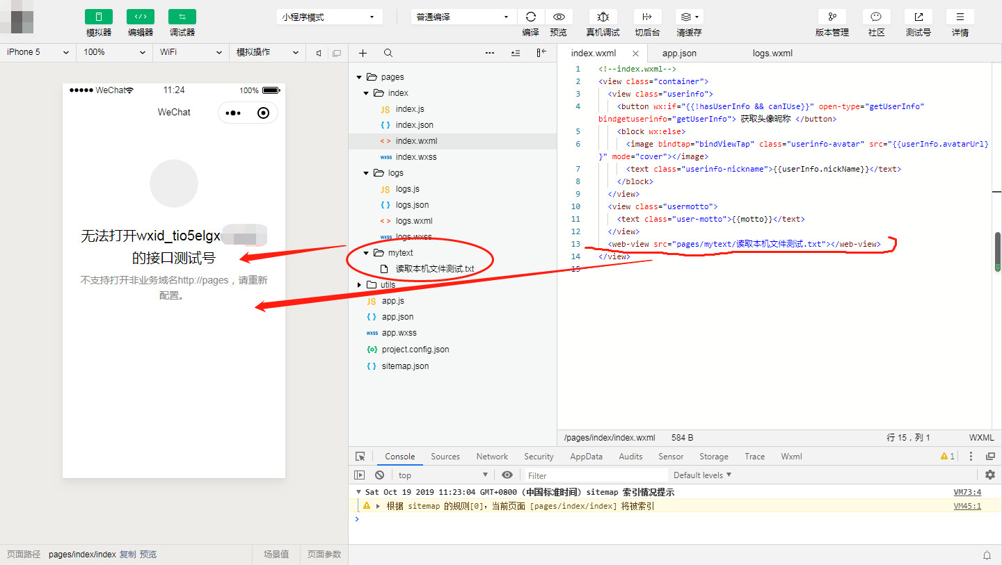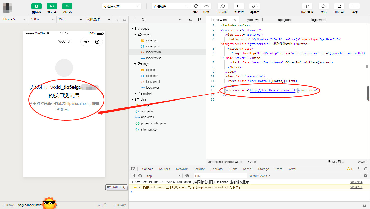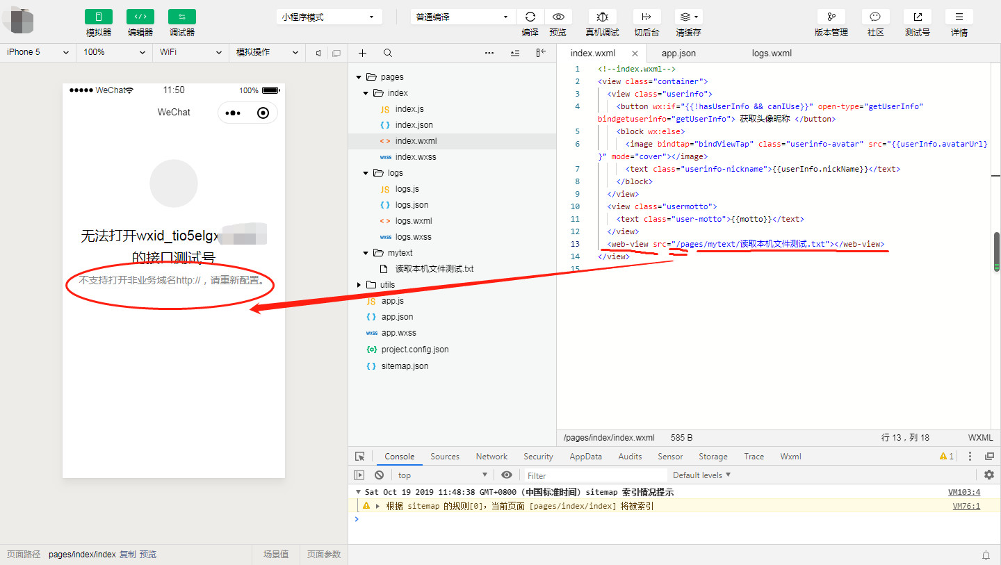 从你目前的问题来看有三点要注意和修改:1、是否是个人开发账号,个人开发账号暂时不支持web-view。2、如果支持web-view需要在管理后台配置业务域名。3、web-view会铺满页面,所以web-view的页面什么都不用写。 如果本地调试的话本地起个web服务器,把本地ip写上去就可以了。 希望可以帮到你
