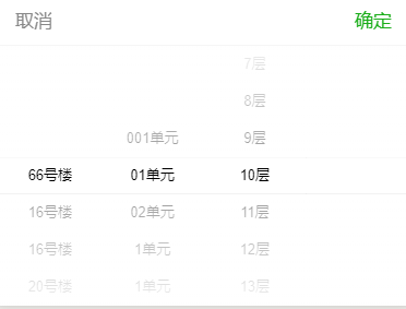 如图:01单元有20层,02单元只有10层,滑动第二列到02层,第三列的层数改变不了,还是20层,目标是第三列20层变成10层来联动。