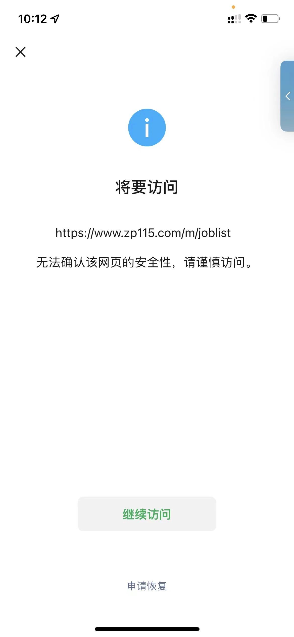 您好,域名(www.zp115.com),刚搭建好的网站,浏览器访问正常,我是网站开发者,,访问时间如图2024/8/16,微信访问网站出现“无法确认该网页的安全性,请谨慎访问”,经检查网页里没有不安全的内容,请核实后帮忙解除拦截,谢谢!