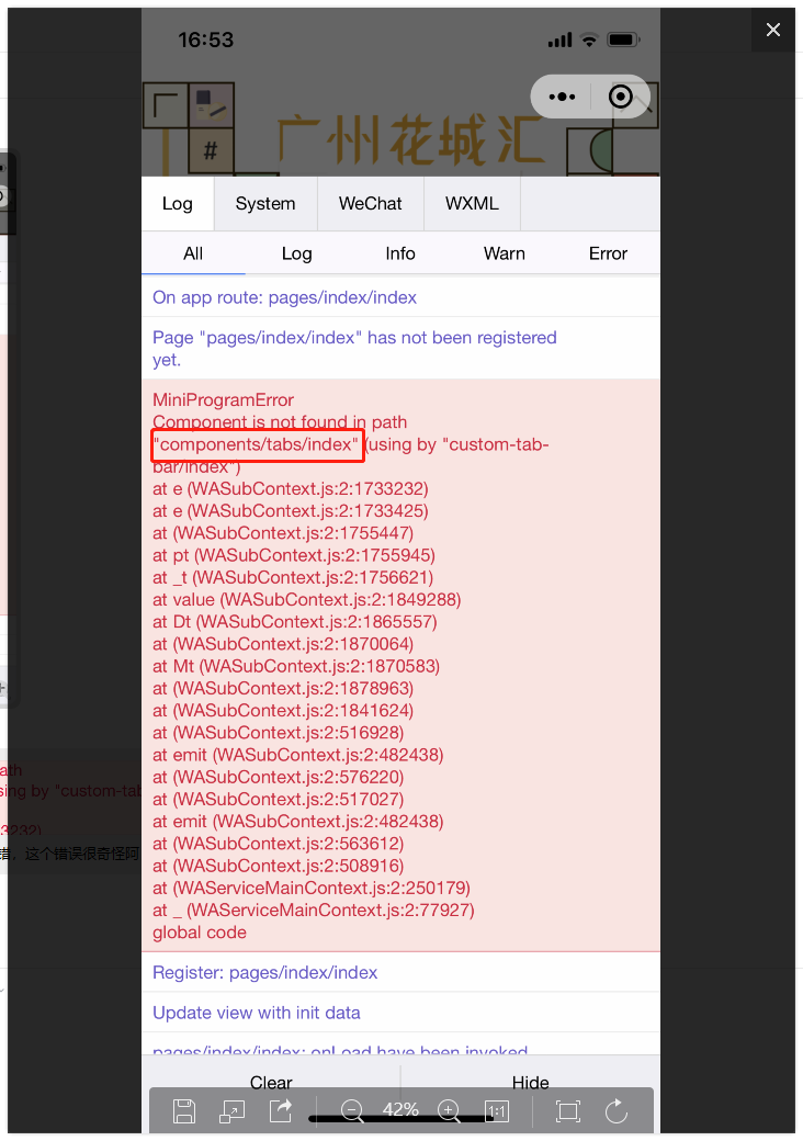 custom-tab-bar没有引入components/tabs/index组件为什么会报这个错的?