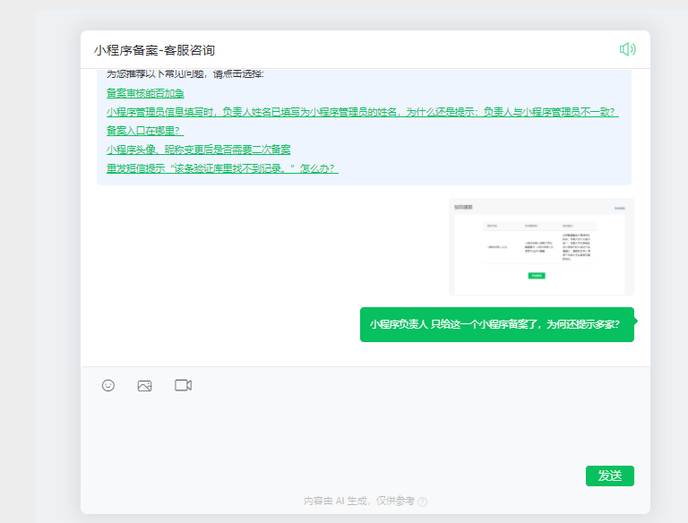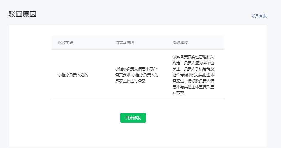 给小程序备案后,变更了小程序名称,要求重新备案时 提示小程序负责人为多家主体进行备案