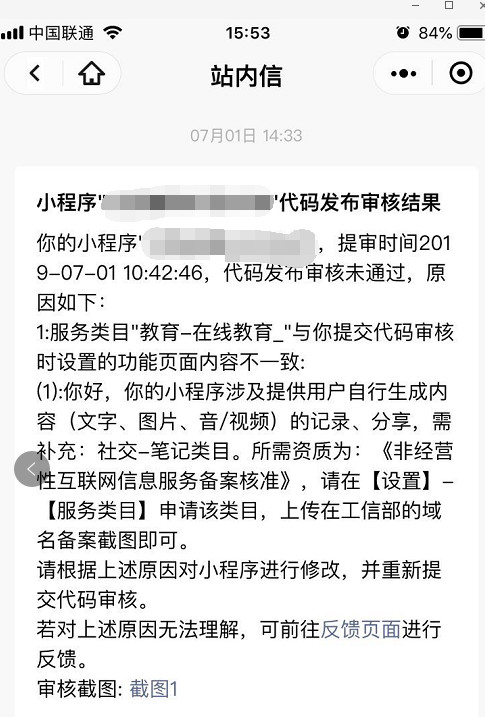 你好,经核实,贵方小程序代码确实涉及提供涉及提供用户自行生成内容(文字、图片、音/视频)的记录、分享,需补充:社交-笔记类目。或请自查代码,确保包括前端展示、小程序代码等整体均移除相关内容,再提交代码审核。