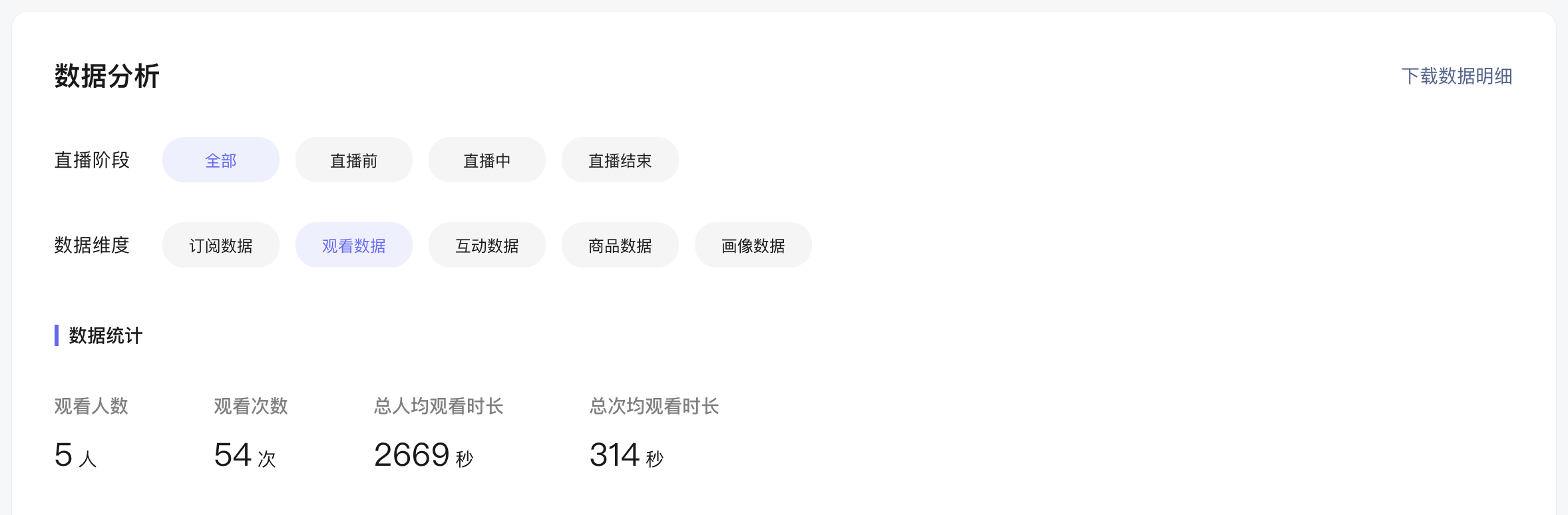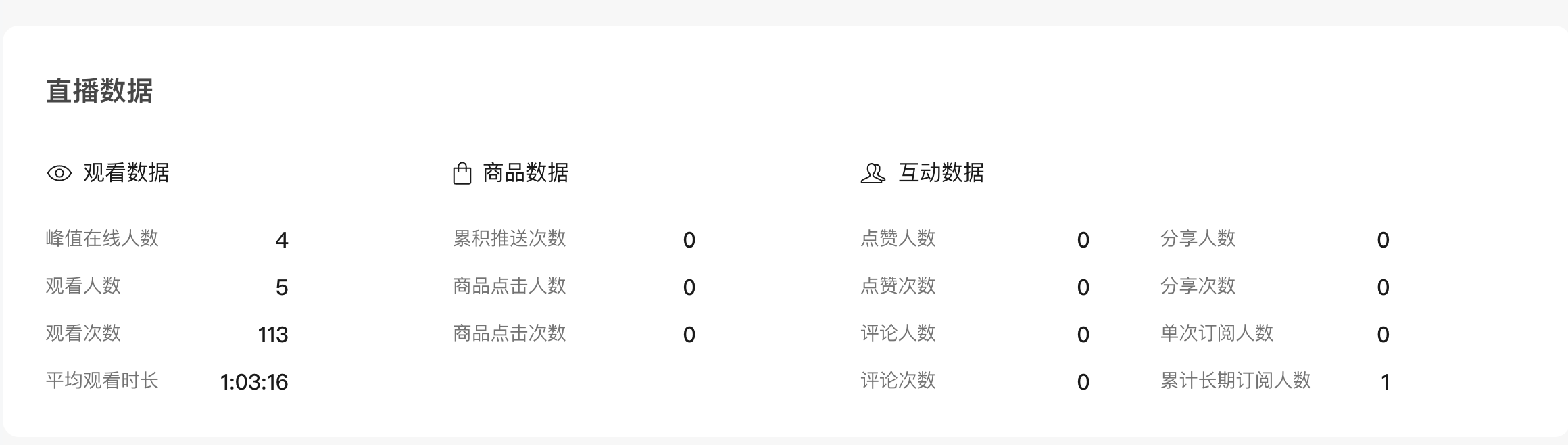 你好,「直播间控制台」内的数据是实时动态更新的,「直播数据」内的直播间数据是T+1更新的。