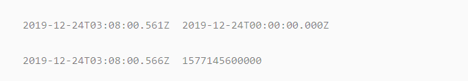 结果是 1577116800000 转换成北京时间是 2019-12-24 00:00:00