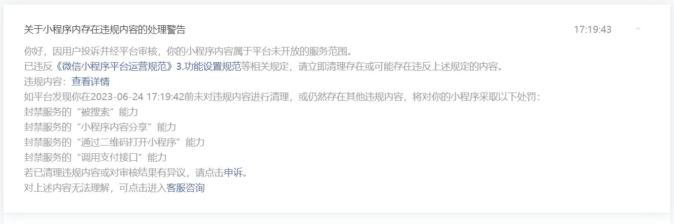 主要说小程序那方面违规。