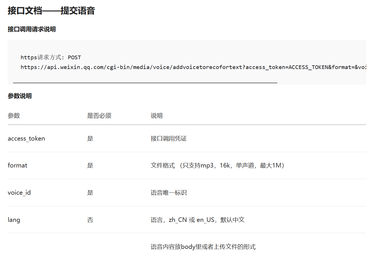 但还有很多不清楚的地方,1,是这些请求头header是啥,尤其是content-type是什么?2,“语音内容方body”是什么意思?二进制格式吗?如果是,又要何种编码?3,文件格式format要等于 "mp3" 吗?