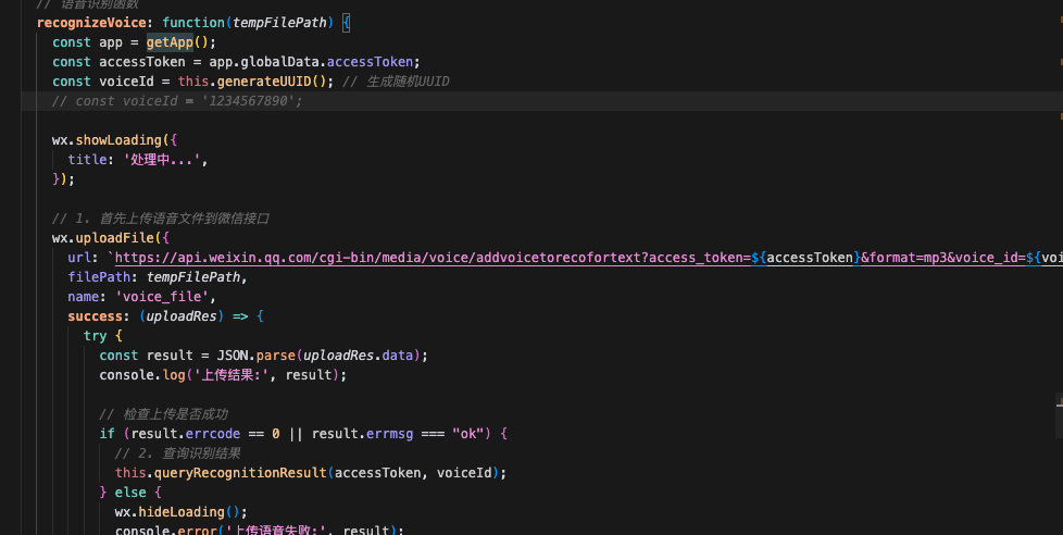 这2步http请求,我都实现了,但可能存在格式错误,返回的都是errMsg: "request:ok",也没有报错,errcode也是0,但是识别文本为空。