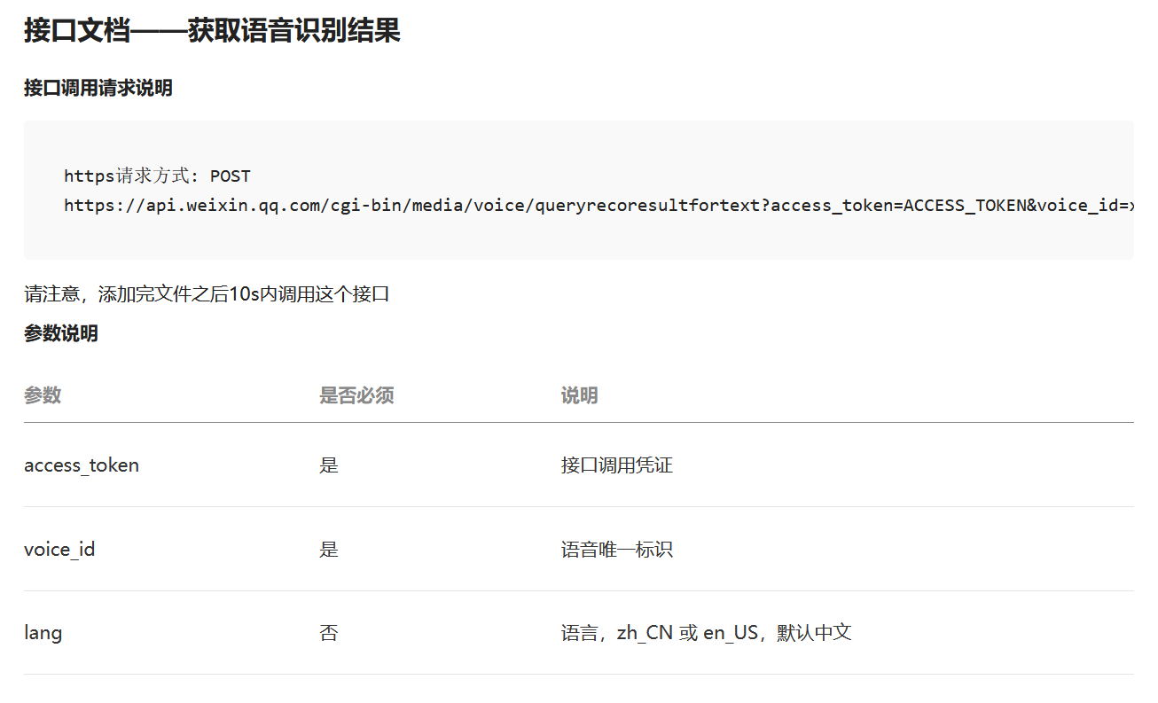该文档描述了微信AI开放接口:https://developers.weixin.qq.com/doc/offiaccount/Intelligent_Interface/AI_Open_API.html