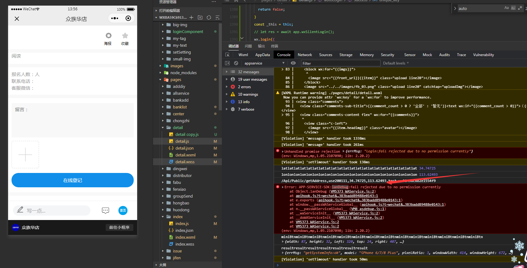 分享到朋友圈后打开报错:Error: APP-SERVICE-SDK:lanDebug:fail rejected due to no permission currently