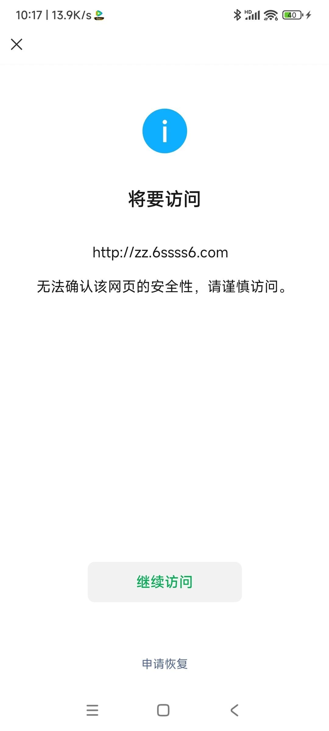 尊敬的官方你好,新购买的域名(zz.6ssss6.com),前几天刚刚备案,所有的二级提示:无法确认该网页的安全性,请谨慎访问,希望解决一下,截图时间8.6号10.17。