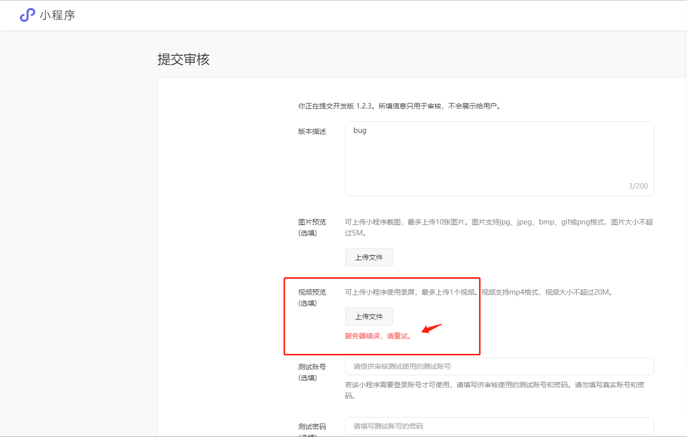小程序提交审核时上传 预览视频 失败