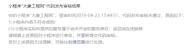 小程序始终无法过审,原因是成品油在线销售属于未开发类目,我表达无法理解,无法接受!下面我提出三点疑惑。