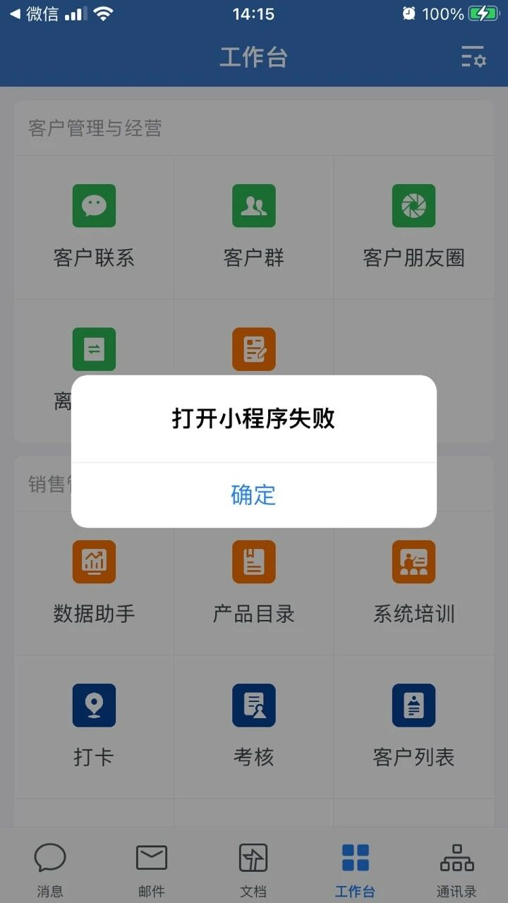 企业微信-》工作台-》点击审批,提示打开小程序失败