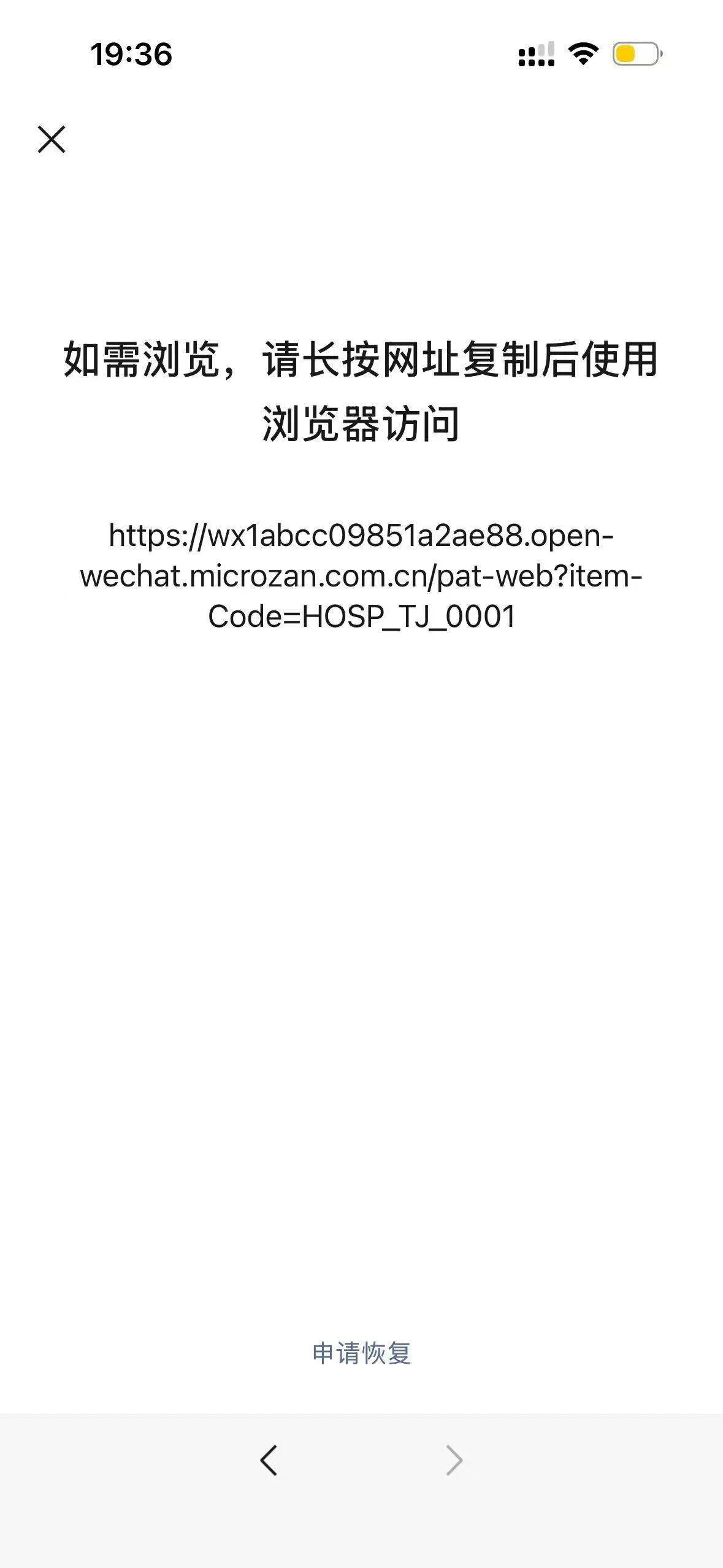 https://wx1abcc09851a2ae88.open-wechat.microzan.com.cn/pat-web?itemCode=HOSP_TJ_0001