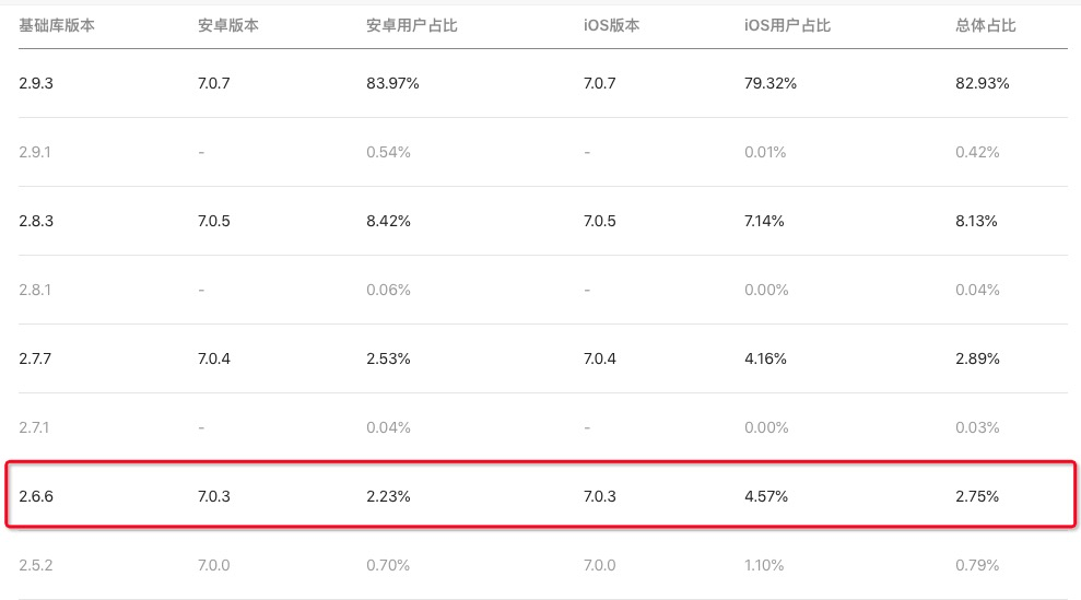 7.0.3版本基础库为2.6.6。而订阅消息的API需要2.8.2
