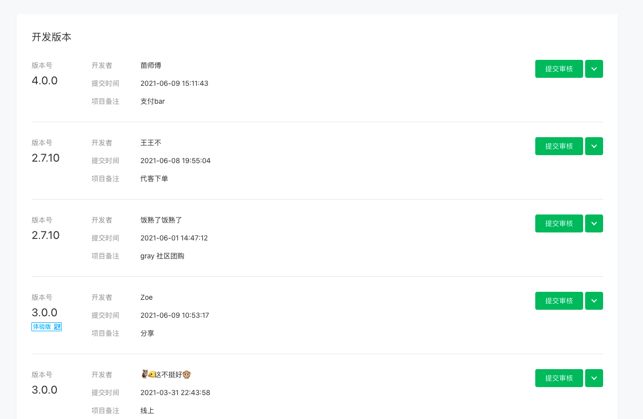 小程序开发助手 开发版版本不同步 我6月8号提交的最新的4.0.0的开发版 ;在小程序助手上还是5月28号的的包,重启过,也刷新过,出现了蛮久了这个bug,希望能够解决下