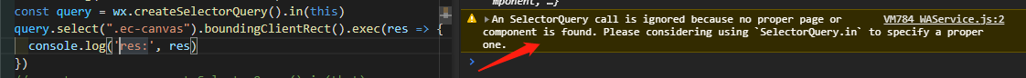 试了下还是提示下面这个: An SelectorQuery call is ignored because no proper page or component is found. Please considering using `SelectorQuery.in` to specify a proper one.