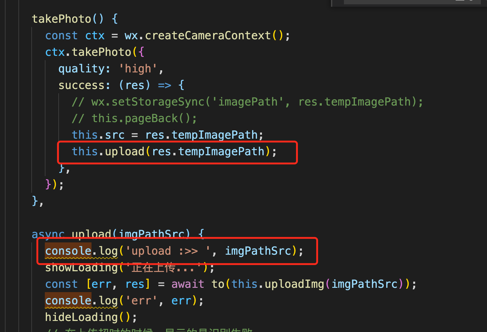 拍照代码如下:
