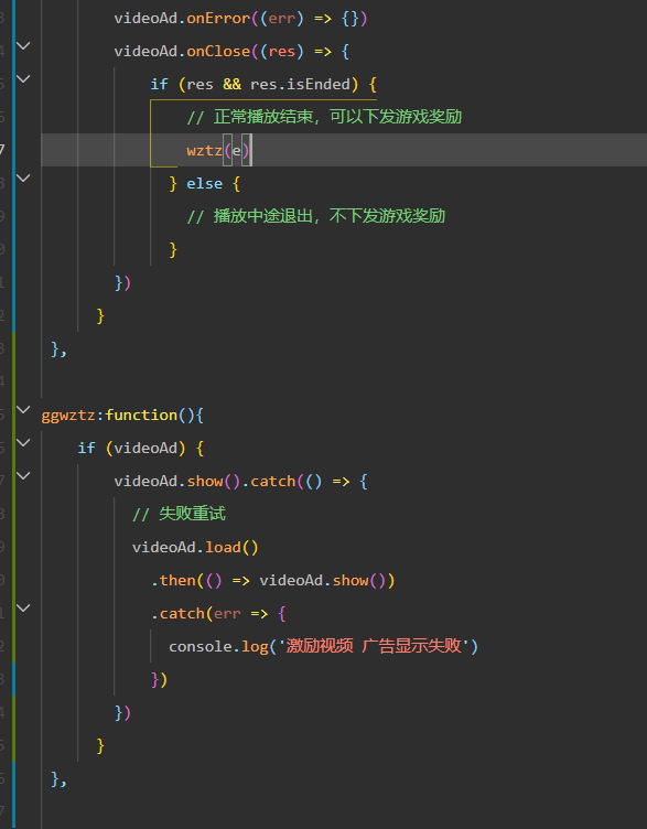 官方大大好啊,我想问一下,我设置的激励视频广告,代码是那里出错了,还是少了哪些代码呢。就是我点击按钮时出现视频广告,但视频播放完了,点击关闭,还是弹出未完成的提示,我问大佬这个怎么解决啊,谢谢了!