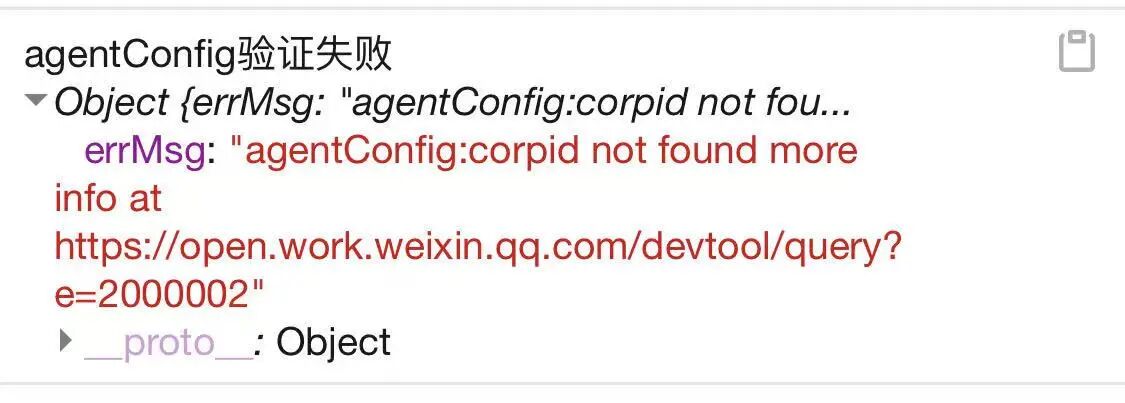 wx.config调用成功之后,调用wx.agentConfig,走了fail方法,打印res如图: