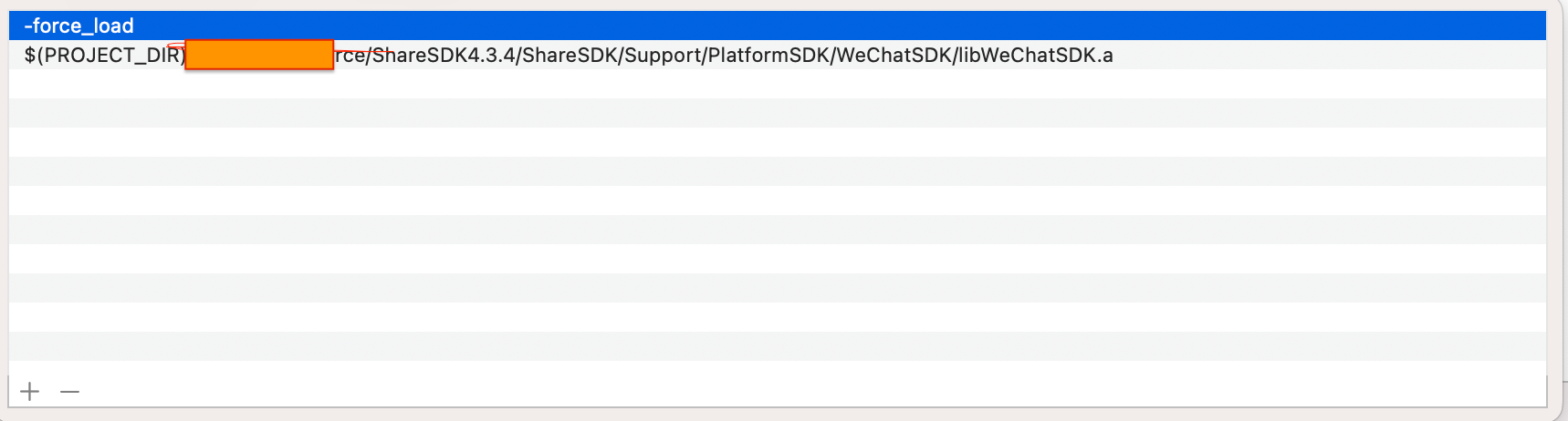 在other link flags 添加-force_load 和$(PROJECT_DIR)/Tan8/OpenSource/ShareSDK4.3.4/ShareSDK/Support/PlatformSDK/WeChatSDK/libWeChatSDK.a 之后 这个
