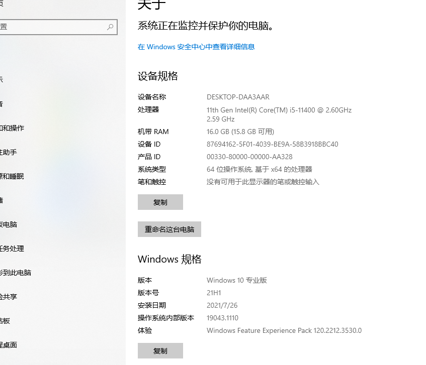 处理器 11th Gen Intel(R) Core(TM) i5-1135G7 @ 2.40GHz 2.42 GHz