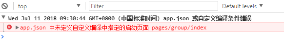 VM11498:2 app.json 中未定义自定义编译中指定的启动页面 pages/group/index,