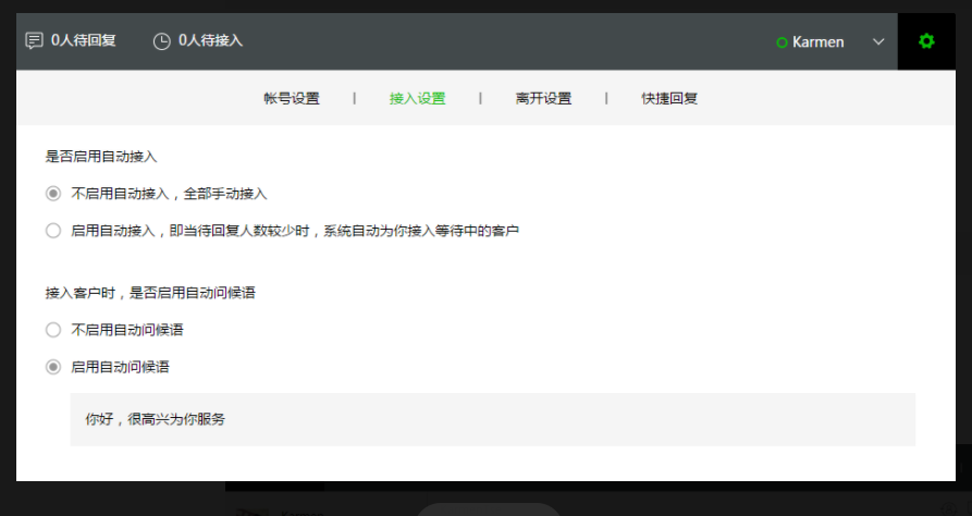 可以设置自动回复。