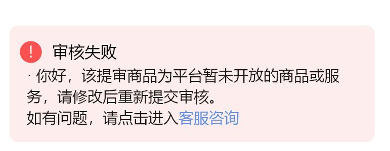 点进去询问客服,等了一天也没有客服回复的,视频小店没有客服的吗?遇到一些问题又找谁呢?各位道友,看看我的截图,我同样类目类型的商品,有两个通过的,就这个怎么也通过不了,一直提示这个失败原因,是什么意思?