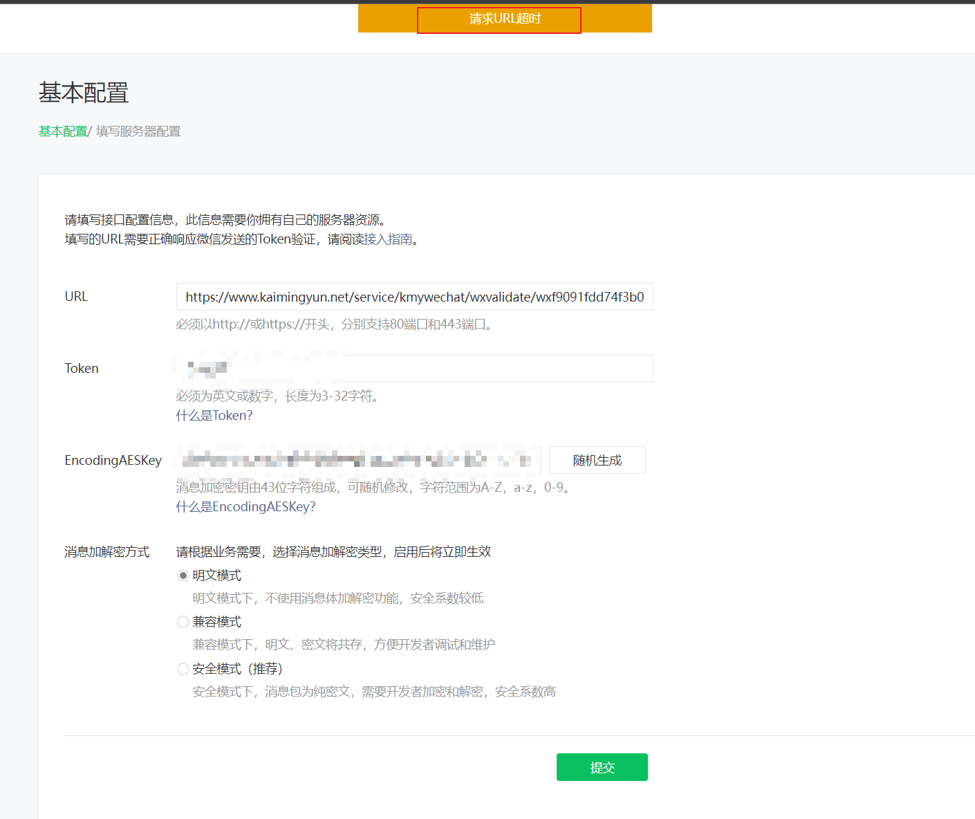 我也出现了这个问题,填写的url直接访问是成功的,配置里提交一直超时