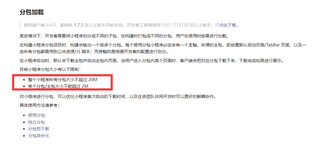 https://developers.weixin.qq.com/miniprogram/dev/framework/subpackages/basic.html