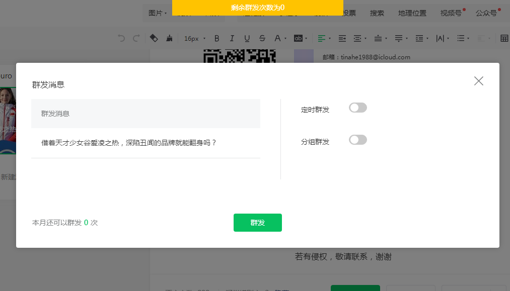 gh_784aaa304320。我今天想群发草稿箱里的文章,就发不出去了,谢谢