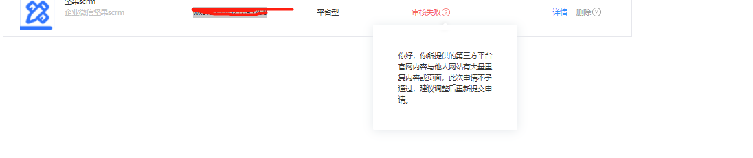 你好,该应用所提供的网站信息包含的页面与他人网站有大量重复内容或页面,建议修改为自己公司网站后重新提交申请。