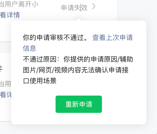 申请wx.getLocation接口需同时满足类目开放范畴和接口使用场景开放范畴两个条件才可通过审核,建议在提交接口审核时详细描述下申请接口使用场景,并提供小程序内申请接口相关截图或录屏辅助审核,以便快速通过审核。一般是审核人员不知道你wx.getLocation接口用在哪里,或者服务类目选择不对。一些场景,是不允许wx.getLocation的。联系V:pintutu可以帮你解决。外卖考勤等场景,是大概率可以通过wx.getLocation的。申请的时候把使用场景描述清楚具体一点,要从用户角度出发,如为了用户及时上传位置之类的,不要说为了获取用户位置。或者改成改成申请wx.chooseLocation,这个接口相对好申请一些。