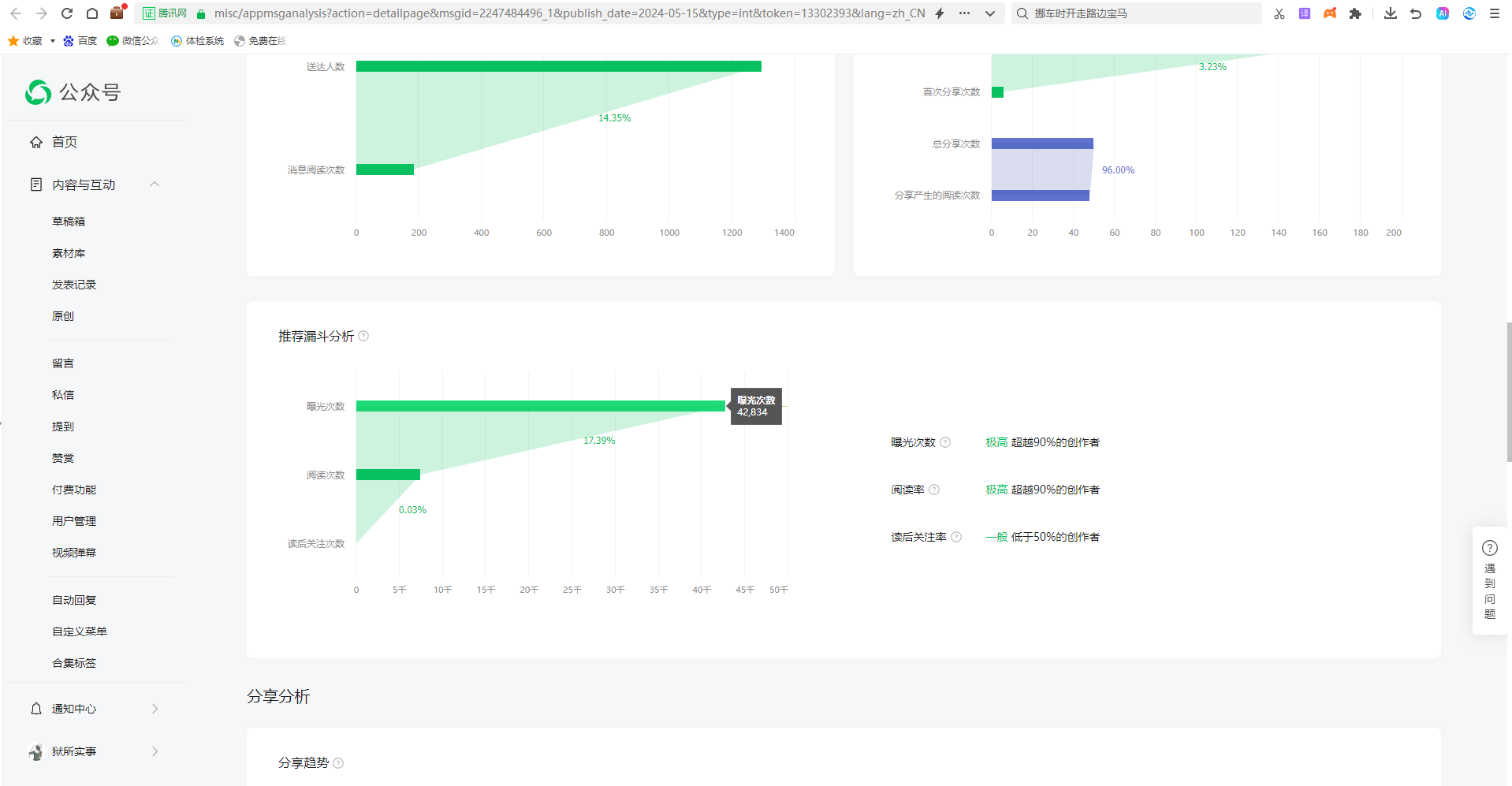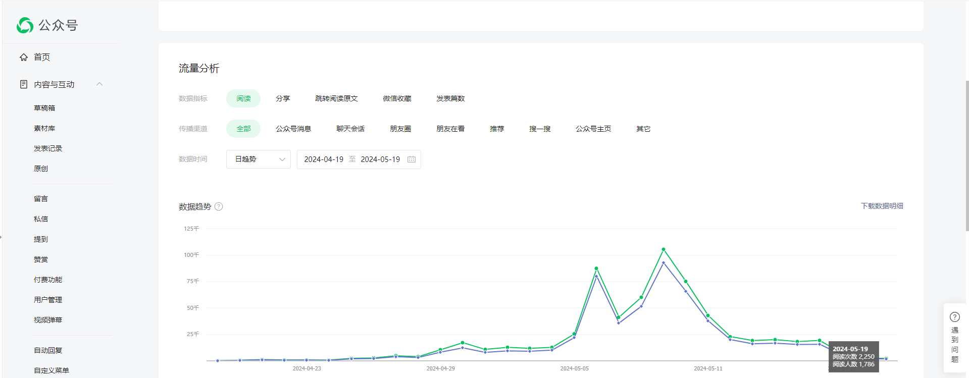 名称:狱所实事 原始ID: gh_0bbe506e956f,自从5.19推流基本就不推了,之前随便一发都是好几千的阅读量现在最新一篇的文章推流曝光不过3千了,我也没违规也没干啥的,相比其他同类型的公众号推流基本在7个多月才不推的,我得才经历了10来天很不正常吧?求给个回复是什么原因啊如图一直在下降