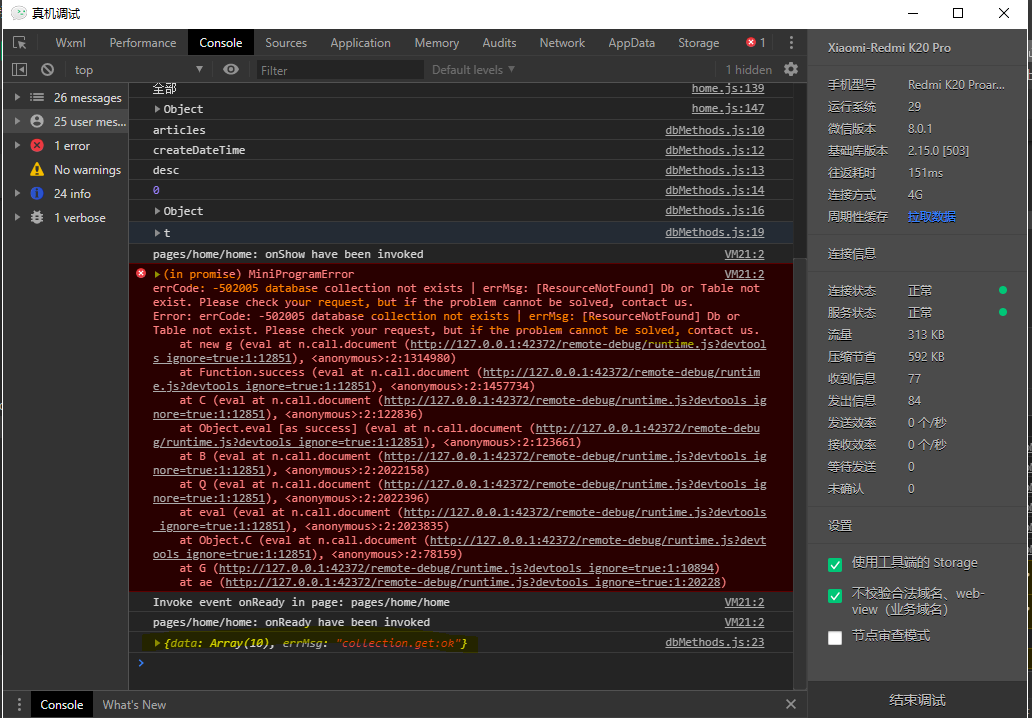 云开发报错-502005,但能取到数据?1开发者工具不报错2真机调试出现3只有首次打开小程序才出现
