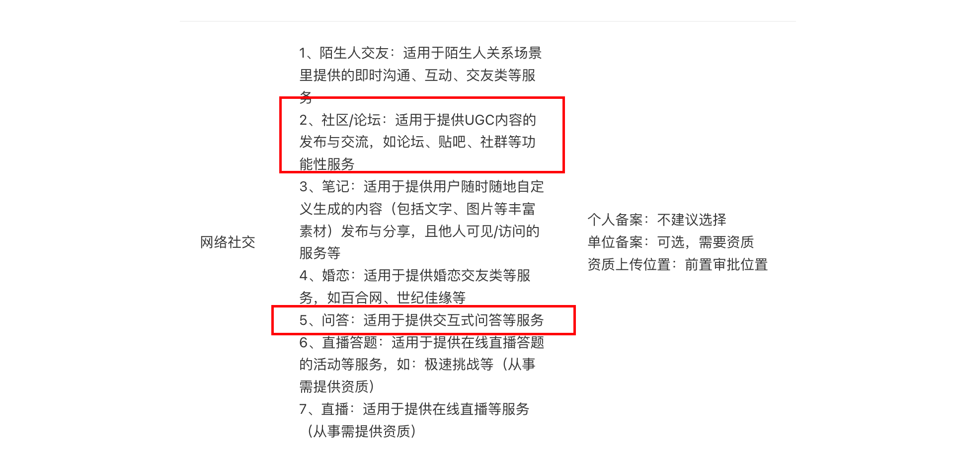 个人主体小程序不支持社交和UGC,非个人的话需要ICP备案,具体以实际类目要求资质为准,参考:https://developers.weixin.qq.com/miniprogram/product/material/#%E9%9D%9E%E4%B8%AA%E4%BA%BA%E4%B8%BB%E4%BD%93%E5%B0%8F%E7%A8%8B%E5%BA%8F%E5%BC%80%E6%94%BE%E7%9A%84%E6%9C%8D%E5%8A%A1%E7%B1%BB%E7%9B%AE。