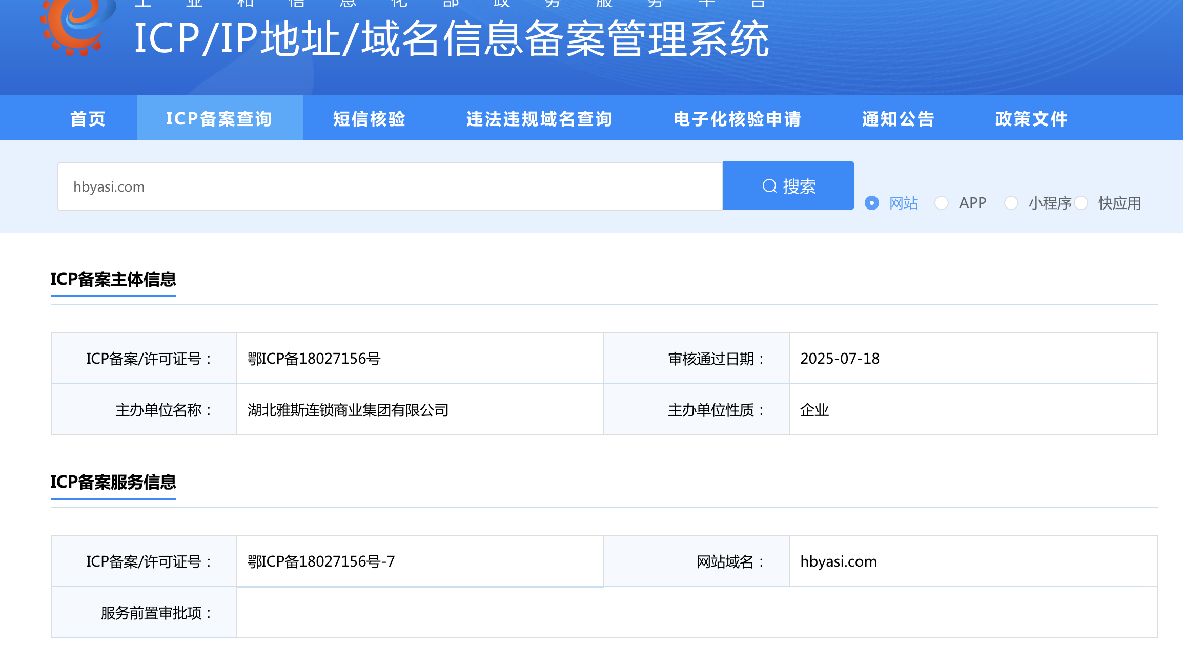 您好,该域名(https://h.hbyasi.com)是已经备案的,现配置了链接扫二维码打开小程序,和在小程序内使用该域名展示超市活动内容