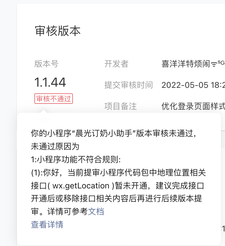 提交getLocation的api权限申请,一直都是以这个理由拒绝。