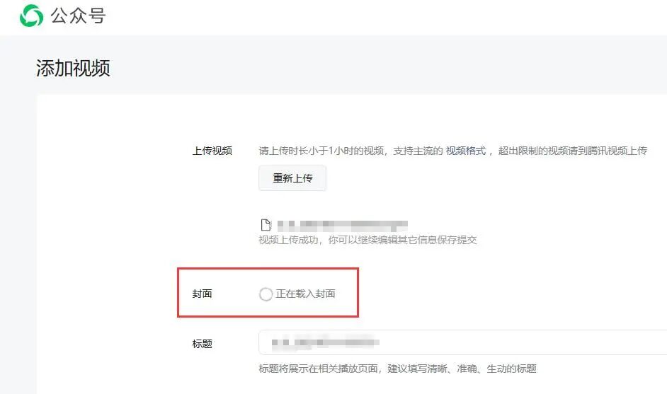 你好,该情况建议检查原视频在电脑是否能正常播放,如视频文件有问题会导致上传无法获取封面。