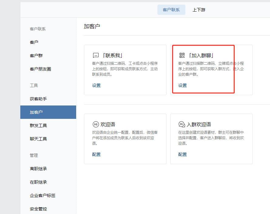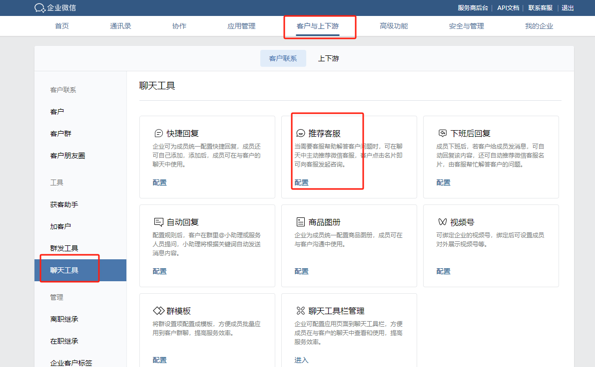 客户管理那里配置:企微后台-客户管理-聊天工具-推荐客服