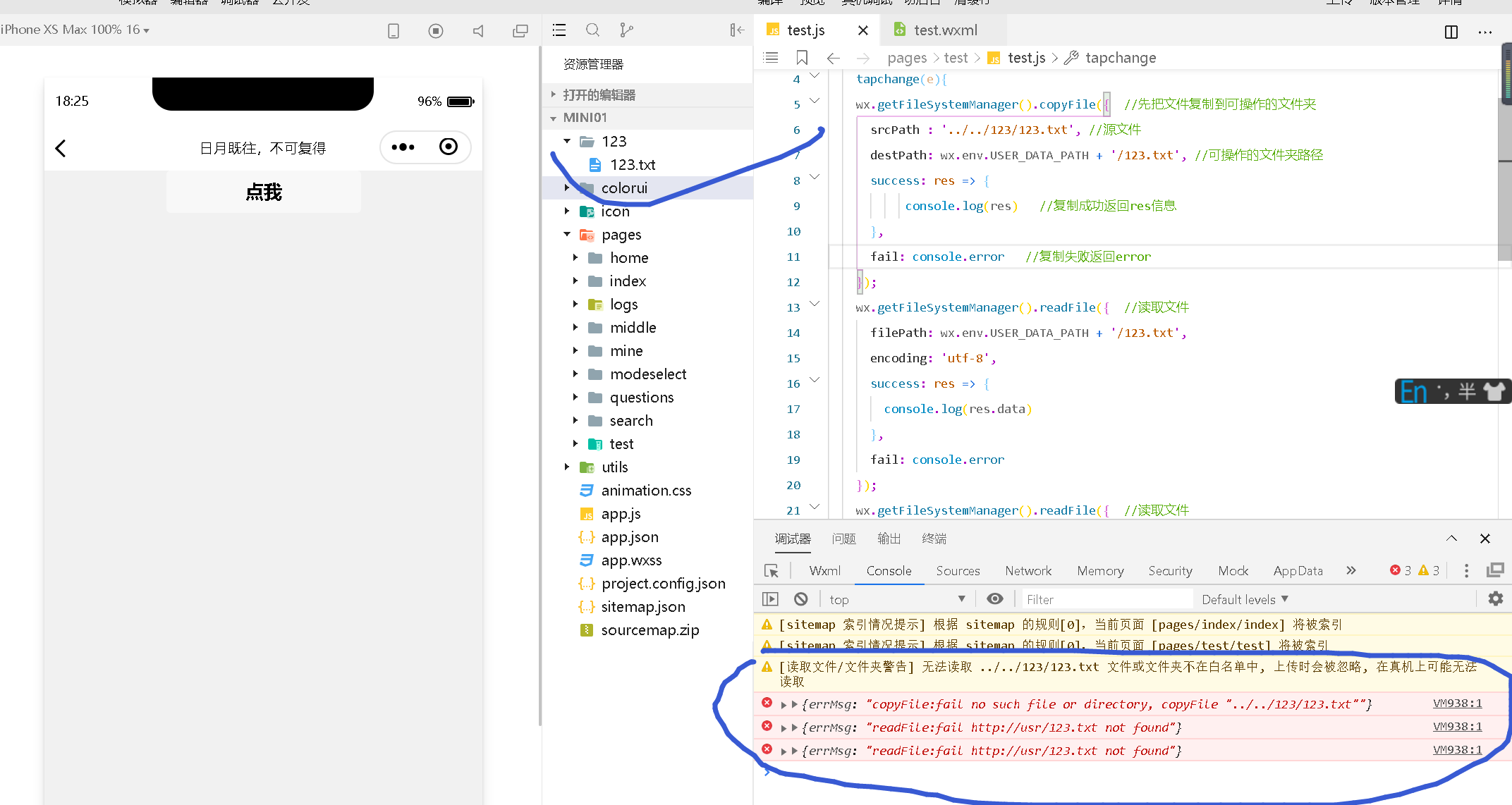 FileSystemManager不是这么来用的,它是读取不到你代码目录里的文件的,你要预置数据,还不如用json,按模块导入就行,或者通过接口返回