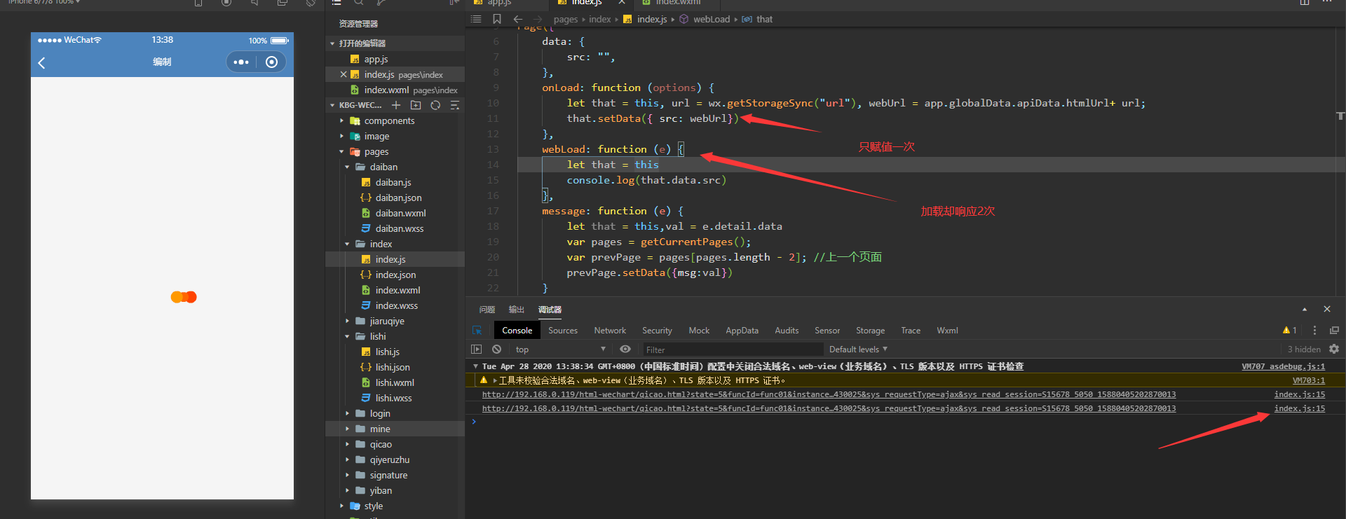 并且经过反复测试,此代码经过扫码后在手机访问确实正常。编辑器一直保持2次访问与响应