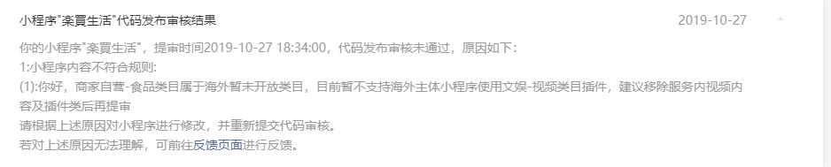 我们是电商平台,没有什么自营食品类,另外我们也没有使用视频类目插件-教育类目也只是预约工具而已,而且我们也有填写相关类目。这个具体是什么情况?